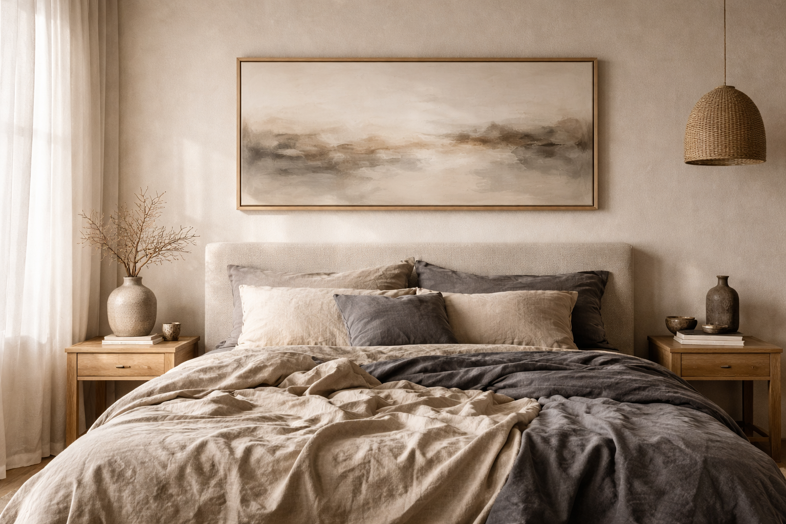 Bring balance to your walls with our Geometric Series. Inspired by the "Warm Minimalism" movement, these pieces combine sharp architectural forms with the organic textures of linen and plaster. It’s the perfect bridge between structural modernism and a cozy, lived-in home.